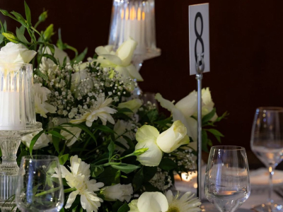 Nişan organizasyonu davetleri için canlı çiçekli masa süsleri.
